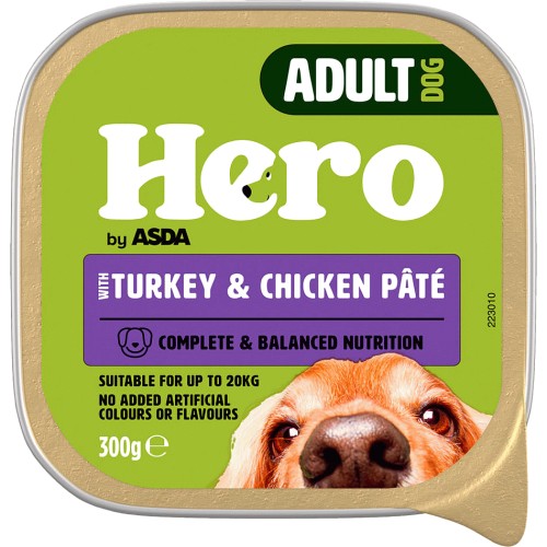 Hero by ASDA Adult Dog Food Turkey & Chicken Pate (300g) Compare